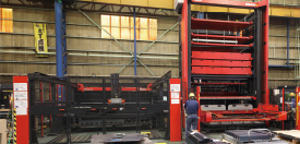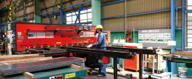• Máy cắt thép tấm thủy lực cỡ lớn dây chuyền tự động giảm nhân lực (Hãng sản xuất : Amada) H4016 (Khả năng cắt 16x4000 / kèm xe nâng tầm cao, hệ thống tự động cung cấp vật liệu và thước đo NC)